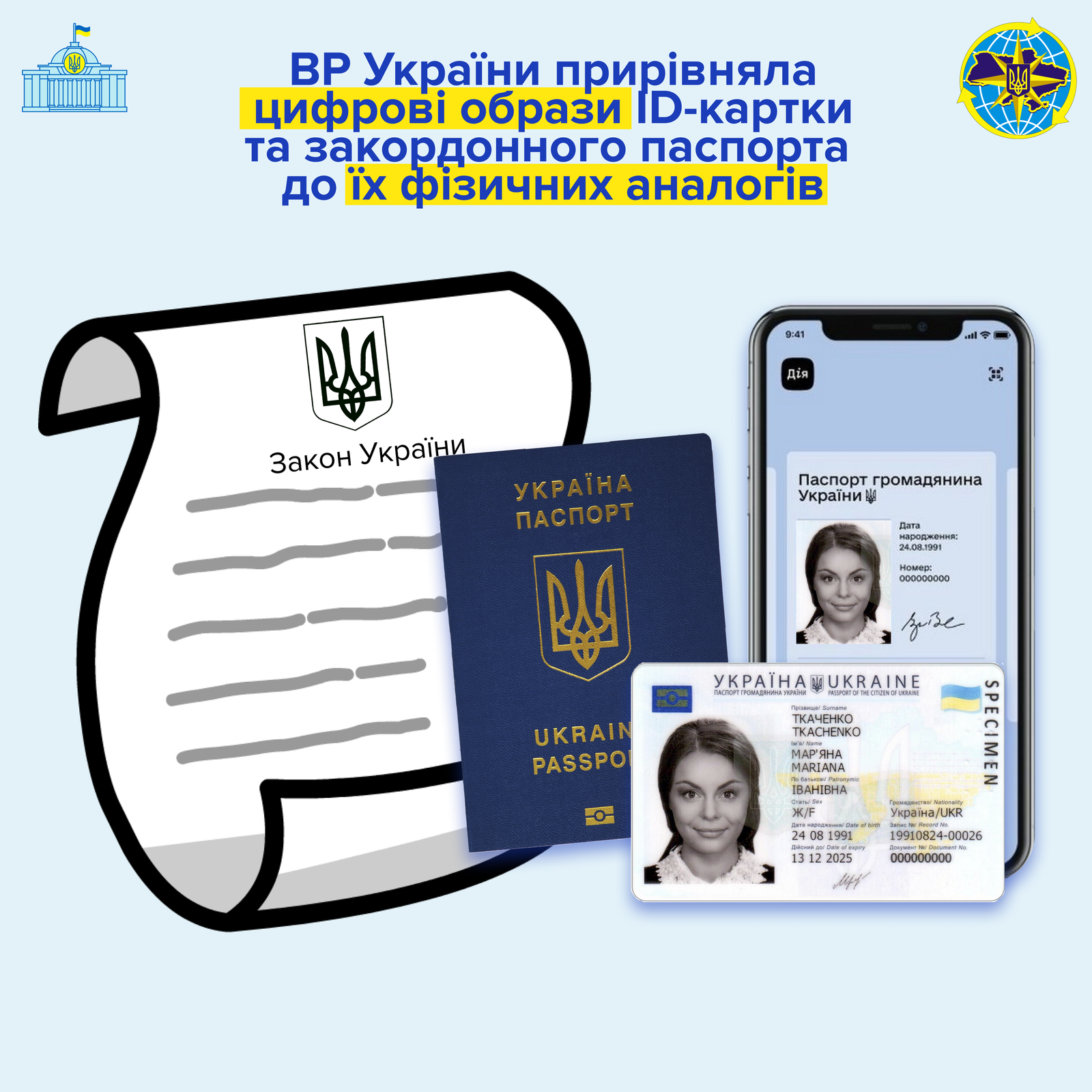 Verhovna Rada Na Rivni Zakonu Ukrayini Pririvnyala Cifrovi Obrazi Id Kartki Ta Zakordonnogo Pasporta Do Yih Fizichnih Analogiv Derzhavna Migracijna Sluzhba Ukrayini